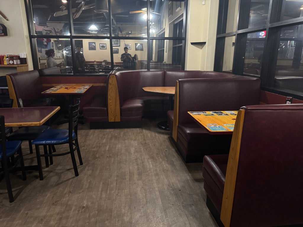 LOCATED NEXT TO THE FRENCH VALLEY AIRPORT. WOMAN OWNED FOR OVER 20 YEAR. BOOTHS MADE FROM A VINYL CALLED OXYBLOOD. WITH PANELS MADE FROM RED OAK.